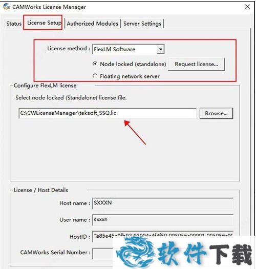 10.再以管理员身份运行C盘根目录下的CWLicenseManager内的CWLicenseManager.exe,选择许可证管理License Setup,License method选择FlexLM Software,浏览指定CWLicenseManager文件夹下的teksoft_SSQ.lic许可证文件,点击确定。