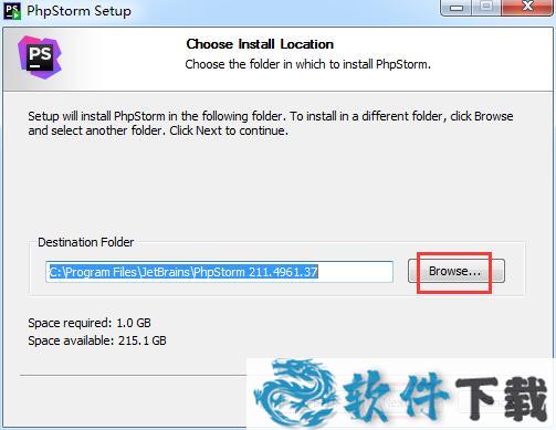 3.选择软件的安装文件夹,默认的是C盘,单击【browse】修改到其它文件夹