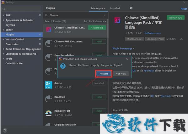 10.安装成功后需要重启软件,点击Restart IDE,然后弹出提示点击Restart即可