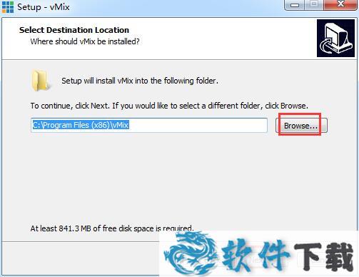 5.选择软件的安装文件夹,默认的是【C:\Program Files (x86)\vMix】,单击【browse】自定义