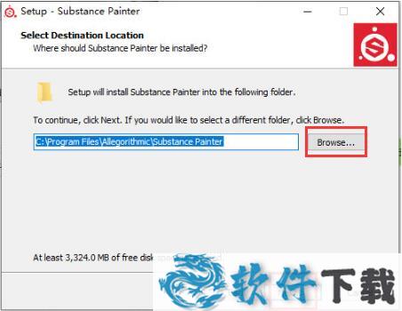 3.选择软件的安装位置,默认是C盘,单击【browse】自定义