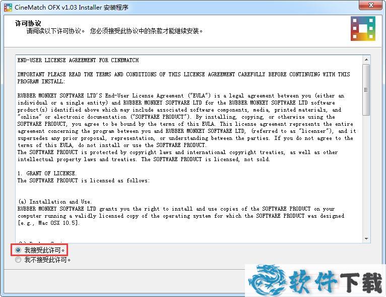 2.阅读软件的许可协议,勾选【我接受此许可】,单击【下一步】
