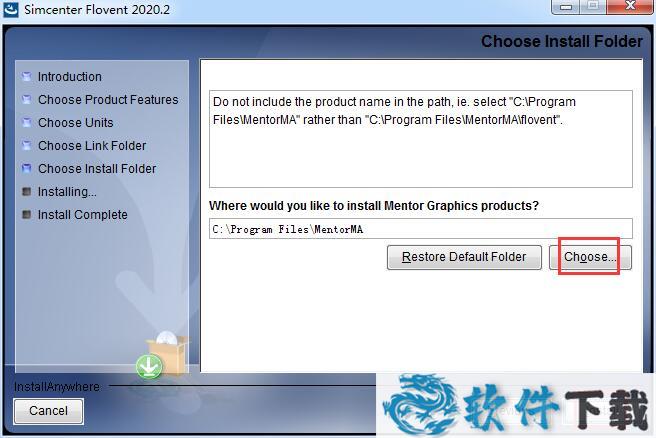 7.选择FloVENT2020安装位置,默认的是C盘,单击【choose】修改,单击【install】开始安装