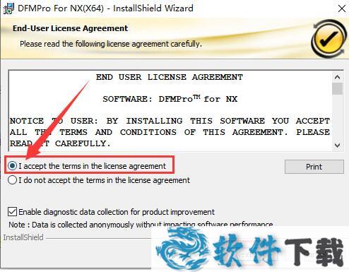 2.运行DFMProForNX_v8.0_x64_Setup_NX1926_1953.exe,出现软件的许可协议界面,勾选【I accept...】