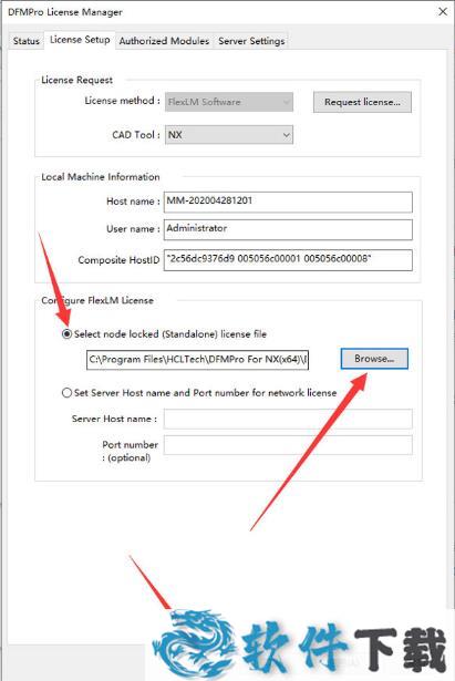 7.运行DFMPro for NX(x64文件夹下 \ DFMProLicenseManager \ DFMLicenseManager.exe,在“License Setup”选项卡上,点击Browse选择同目录下的gssl_SSQ.lic许可证文件,点击打开,然后点击确定完成许可证设置即可