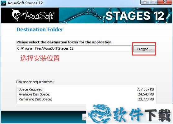 4.选择Stages12的安装文件夹,默认的为C盘,选择其他文件夹单击【browse】自定义