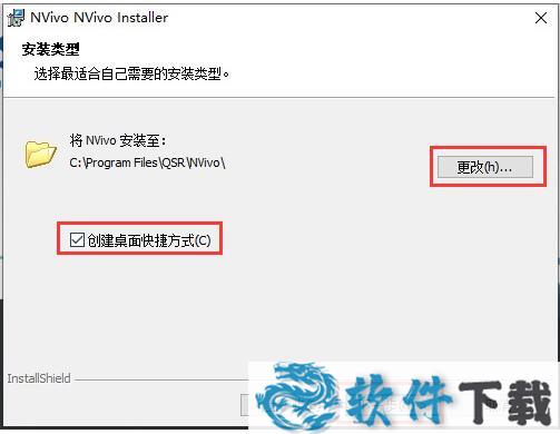 4.选择软件的安装位置,默认的是【C:\Program Files\QSR\NVivo】,单击【更改】自定义,勾选【创建桌面快捷方式】,单击【下一步】就开始安装了,耐心等待