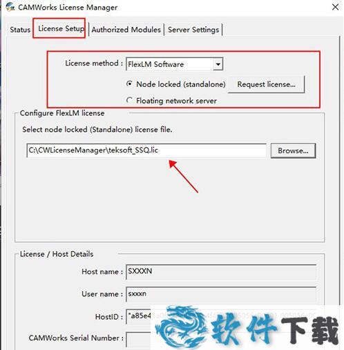 8.将CWLicenseManager文件夹复制到软件的安装目录下,运行CWLicenseManager.exe,切换至License Setup,License method选择FlexLM Software,浏览指定CWLicenseManager文件夹下的teksoft_SSQ.lic许可证文件