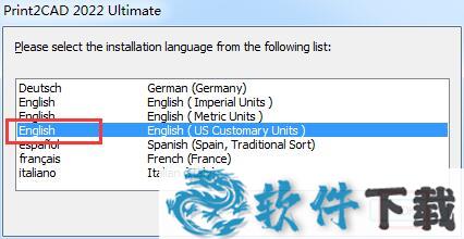 2.首先安装主程序,双击install-Print2CAD-2022-ultimate-x64.msi,选择安装语言,默认【English】,单击【OK】
