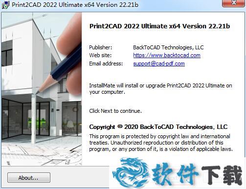 3.进入Print2CAD2022安装向导界面,单击【next】