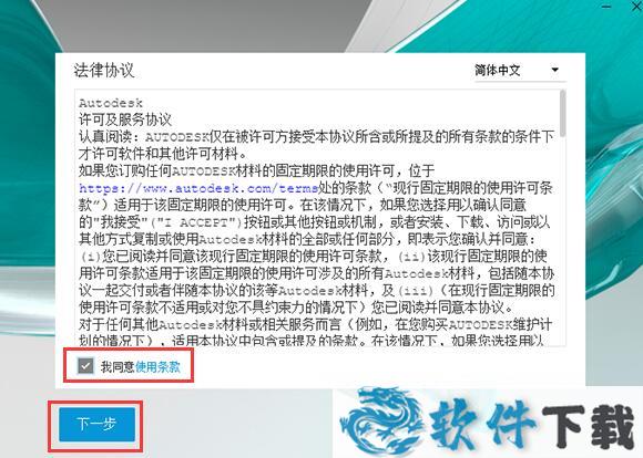 3.解压完成出现软件的许可及服务协议,勾选【我同意使用条款】