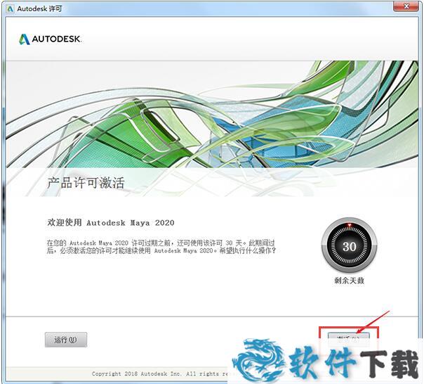 8.不想激活的话可选择试用,单击【运行】可免费使用30天,激活的话单击【激活】按钮