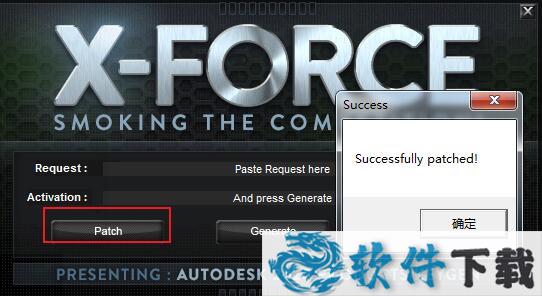 13.这时候以管理员身份运行软件包中的注册机文件xf-adesk20_v2.exe,点patch按纽弹出【successfully patched】