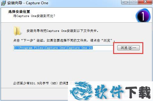 4.选择软件的安装目的地,默认的是【C:\Program Files\Capture One\Capture One 21】,单击【browse】修改
