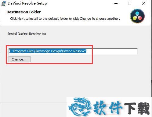 5.选择软件的安装目的地,默认的是C盘,单击【change】修改