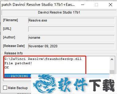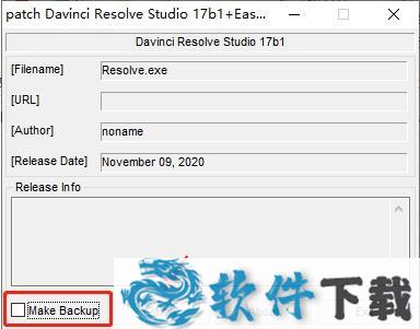 9.以管理员身份运行【davinci.resolve.studio.17b1-patch+EasyDCP.exe】,取消勾选【Make Backup】,点击patch