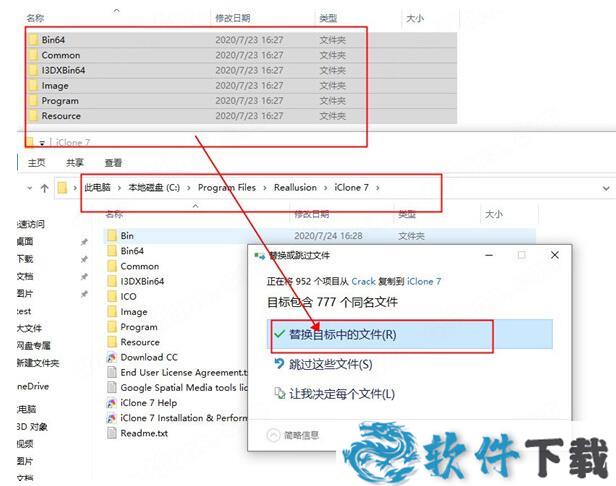 11.断开网络,将crack中的文件复制到安装目录中,点击替换目标中的文件,默认路径:C:\Program Files\Reallusion\iClone 7