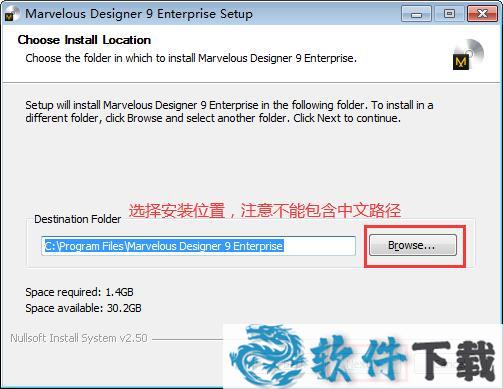 4.选择安装位置,默认的为【C:\Program Files\Marvelous Designer 9 Enterprise】,单击【browse】修改