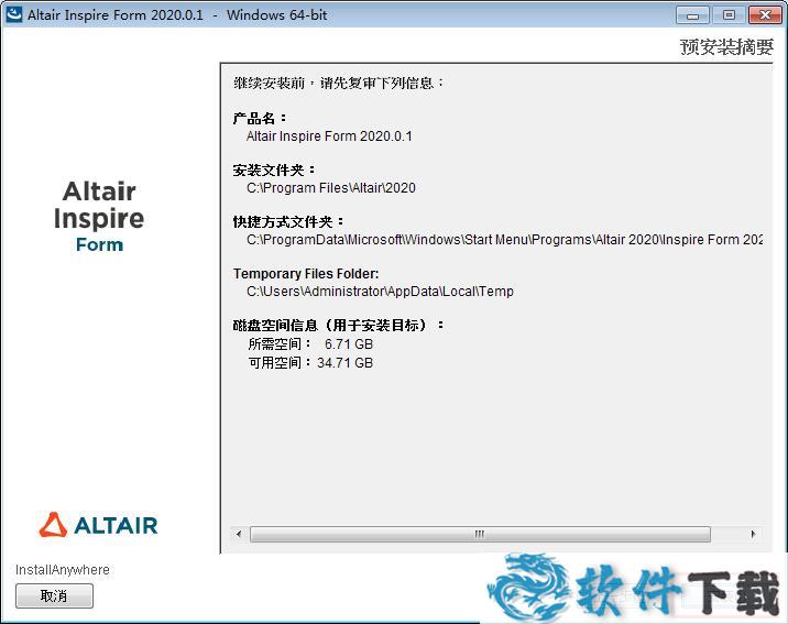 2.双击AltairInspireForm2020.0.1_win64.exe文件,开始解压缩,如图