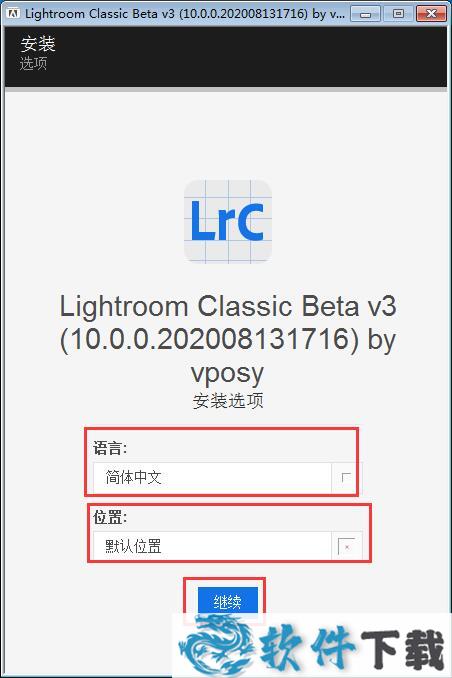 3.选择安装语言【简体中文】,选择安装位置,单击【继续】