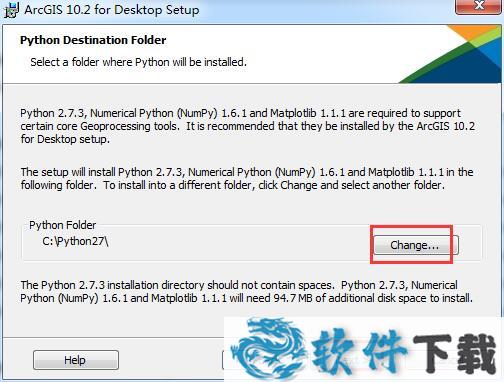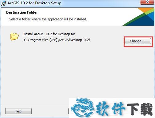 12.选择软件的安装位置,默认的是【C:\Program Files (x86)\ArcGIS\Desktop10.2\】,选择其他文件夹单击【change】