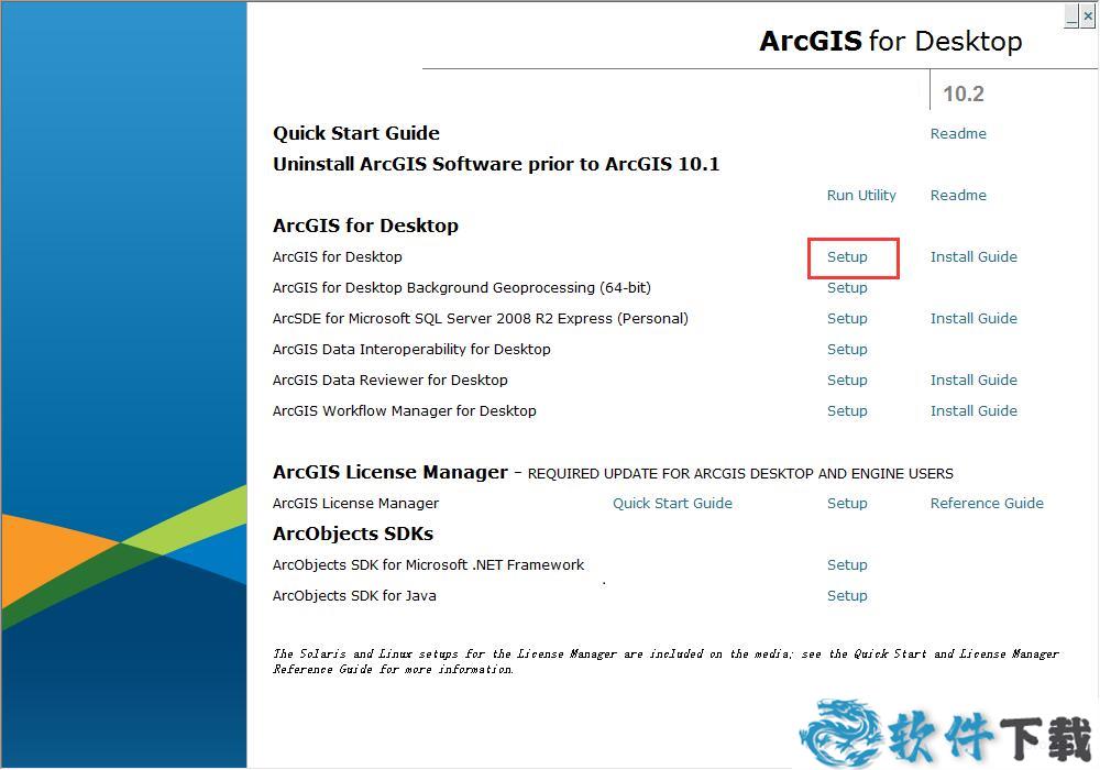 8.接下来开始安装Arcgis Desktop 10.2主程序,单击【setup】