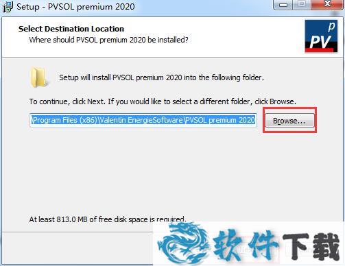 5.选择安装目的地,默认的为【C:\Program Files (x86)\Valentin EnergieSoftware\PVSOL premium 2020】,选择其他位置单击【browse】