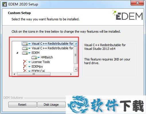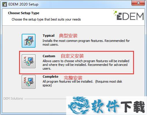 5.选择Altair EDEM 2020安装类型,包括三种,我们这里选择第二项【custom】自定义安装