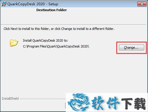 6.选择安装目的地,默认的是【C:\Program Files\Quark\QuarkCopyDesk 2020\】,单击【change】修改