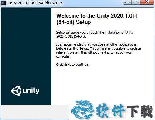 4.继续安装,双击UnitySetup64-2020.1.0f1.exe文件安装主程序,进入Unity2020安装界面,单击【next】