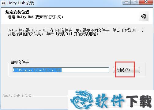 2.选择安装位置,默认的是【C:\Program Files\Unity Hub】,可以单击【浏览】选择其他文件夹,单击【安装】开始安装