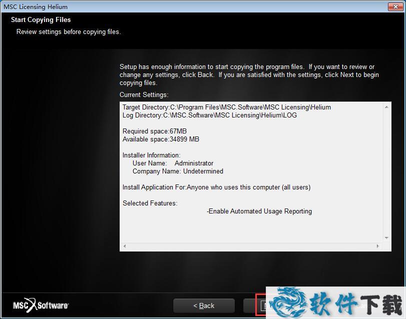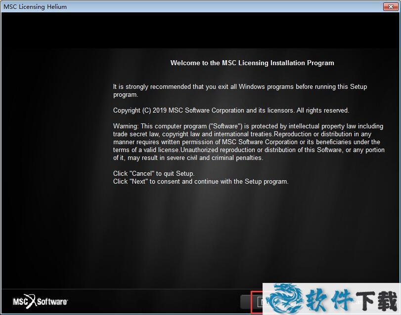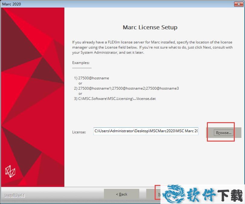3.双击“msc_licensing_helium_windows64_a.exe”安装许可证管理工具,浏览生成的许可证文件License.dat,按照步骤安装即可
