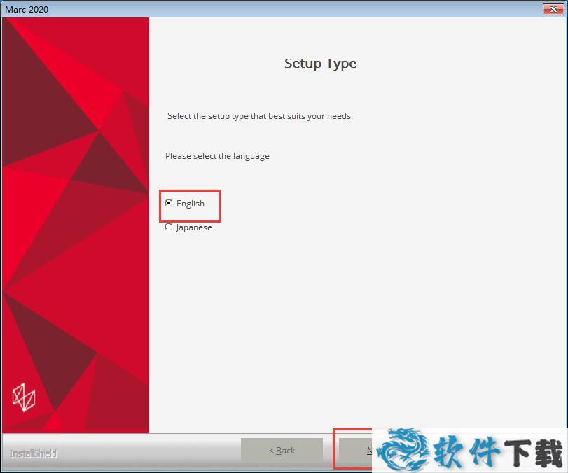 4.双击“marc_2020_windows64.exe”文件,出现如图界面,选择安装语言,默认【English】,单击【next】