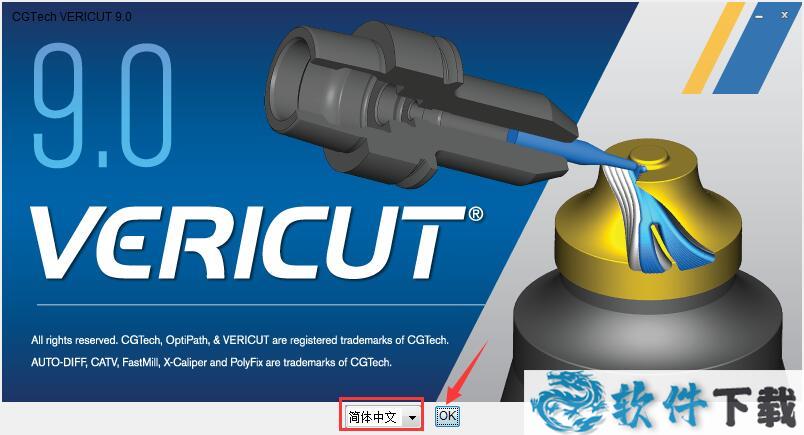 3.选择VERICUT9安装语言,默认【简体中文】,单击【OK】