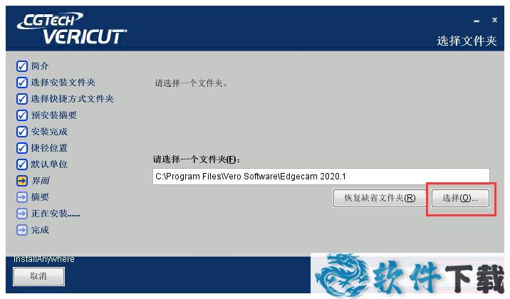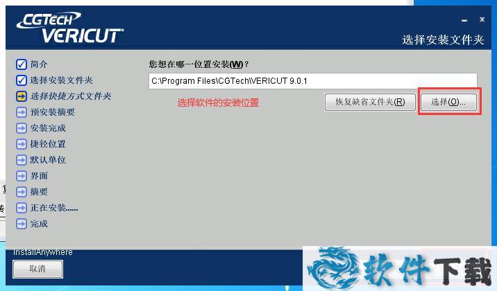 6.选择VERICUT9的安装位置,默认的是C盘,可以单击【选择】安装到其他文件夹