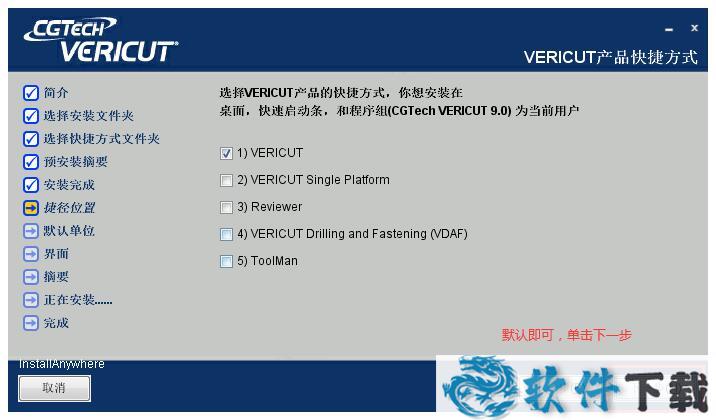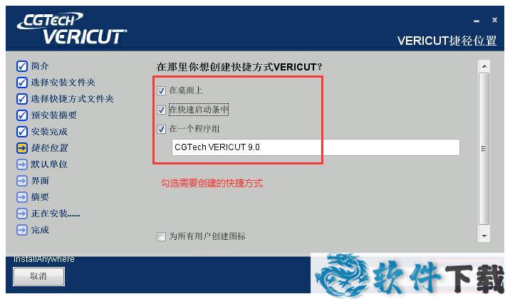 10.选择VERICUT9需要创建的快捷方式,单击【下一步】