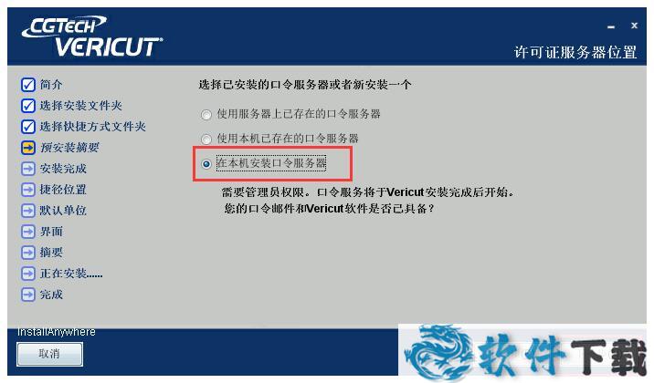 20.接下来会自行安装口令服务器,如果没有,你也可以运行“license_server_install.exe”开始安装,选择简体中文语言