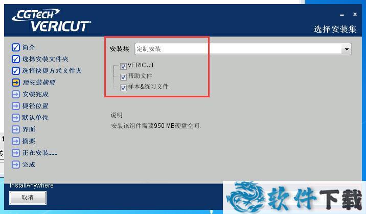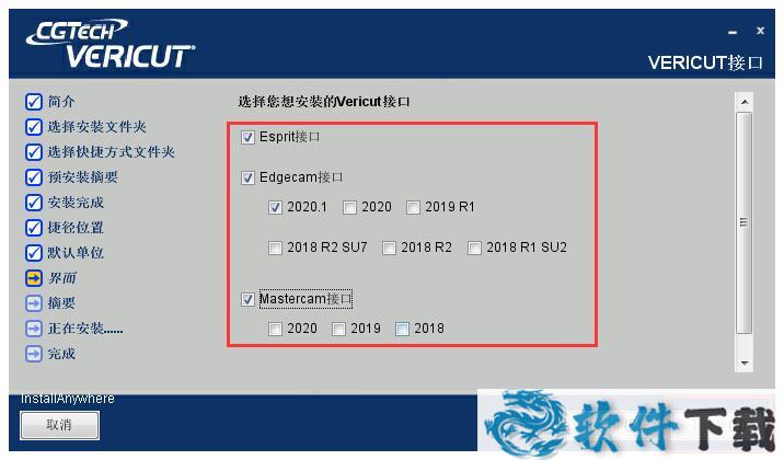 14.选择VERICUT9安装的接口,建议大家全部勾选,也可根据自己的需要勾选