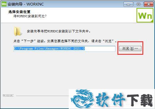 4.选择安装位置,默认的为【C:\Program Files\Hexagon\WORKNC 2021.0】,选择其他文件夹单击【浏览】