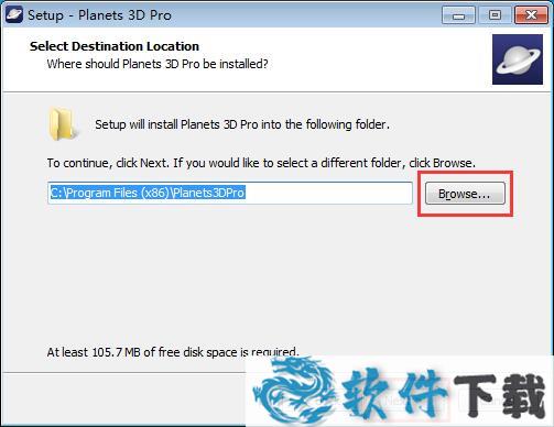 2.选择安装位置,默认的是【C:\Program Files (x86)\Planets3DPro】,单击【browse】自定义