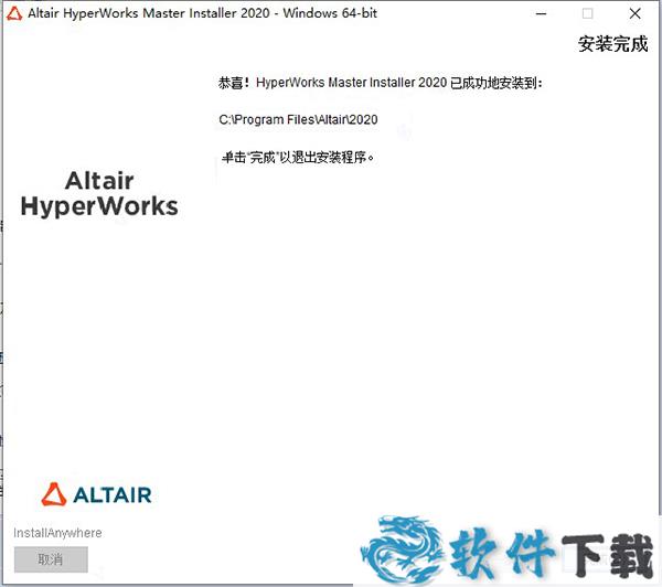 11.等待HyperWorks2020安装完成,单击【完成】退出安装向导,注意暂时不要启动软件