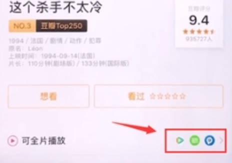 进入想看的影片之后,在下面可以看到可全片播放选项,点击即可查看片源。