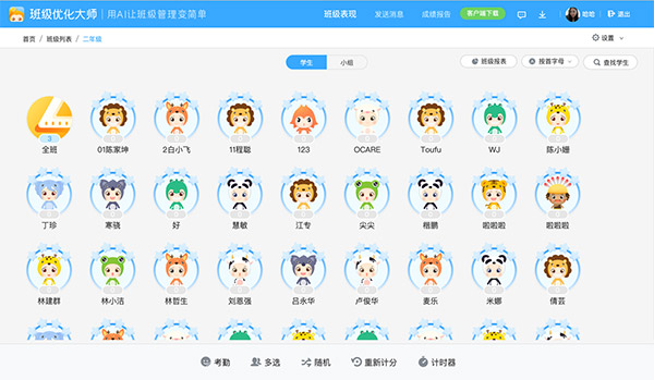 用班级优化大师,让班级管理变简单,数百万名师都在用的班级管理神器,致力于打造高效、有序、欢乐的课堂。拥有先进的课堂管理系统,同时建立班级自治化的制度,管理机制由同学共同制定,更好的营造班级的团结凝聚。独特的卡通头像界面,老师可以简单直接的看到每个学生的表现,以及很方便的为学生评价记录,更好的管理班级。采用奖励制度的方法也提高了同学们的课堂活跃度,沉默不语的后进生也开始积极举手抢答。还可以通过班级优化大师生成每个学生的个人表现图表发给家长,每位家长可清晰看到孩子整一学期的总体表现以及日常存在的问题。
