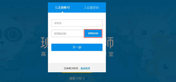 2.输入你的手机号,点击【获取验证码】,稍后片刻后您会在手机上收到一条验证码,输入进去即可:
