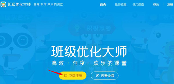 1.下载安装后,打开班级优化大师,点击【立即注册】按钮: