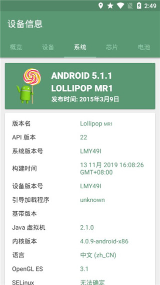 版本名称、API级别、版本号、构建时间、指纹、Java虚拟机信息,实时传感器信息(加速度,陀螺仪,计步器,磁力,步进检测器,重力,运动,旋转,倾斜,手势,唤醒等)。有关每个传感器的可用信息:传感器ID、传感器名称、传感器类型、供应商、解析度、耗电量、最大范围、是否为动态传感器、是否是唤醒传感器、报告方式