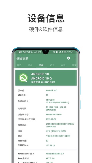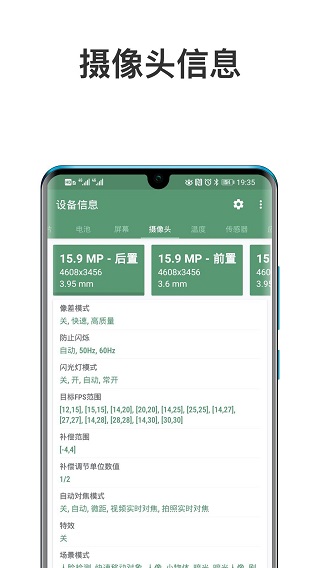 设备信息app是一款可以用于检测自己手机详情的应用软件,可以获取并且向你展示你的设备所有的信息,神都剖析你手机一些参数情况,有了这款软件,你的手机将在你面前一览无余,无论是硬件信息还是软件信息,都能在你的掌控之中,所谓是得天独厚,cpu,系统信息,内存,电池,摄像头,传感器,任何信息都会展示在面前,如果你想对你的手机进一步的了解,不妨来试试这款软件吧,了解你设备的一切参数。