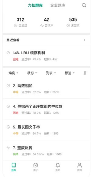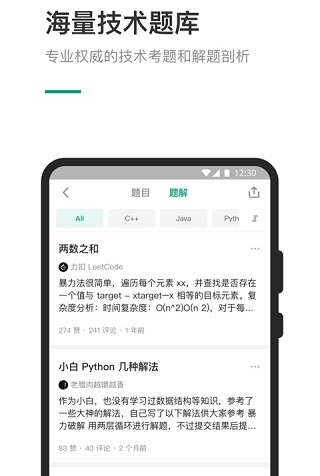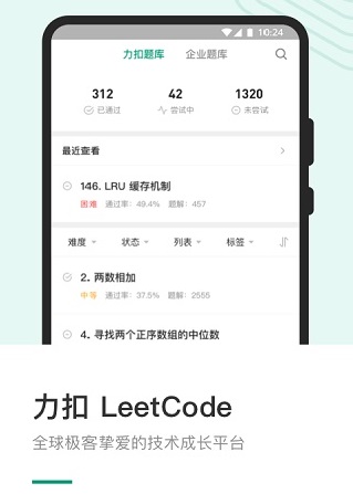 LeetCode(力扣)是由领扣网络(上海)有限公司专门为编程开发者考试学习打造的一款关于数据结构与算法的手机app应用。它不仅承载着大量的数据结构与算法的题型,完成并研究这些题目可以快速提升你的编程能力,远比阅读那些教你如何编程的书籍来得实在。还有有编程类的相关问题,拥有最全的代码例题,助力灵活背公式记代码,并且leetcode大部分题目都能离线下载方便你随时进行学习。有什么问题你可以到上面搜索,当然也可以发表自己疑惑在评论区。这里有大量的专业人士为您解答你的疑惑,是您的课外辅导老师。力扣又称为全球极客挚爱的技术成长平台,在这里可以提升技术能力,有百万社区用户、充足技术干货等你来,力扣助你职业技能快速成长!