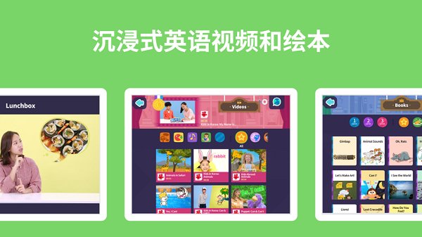 全面:产品为孩子提供超过200本有趣绘本、300个英语视频,以及超过700天学习内容,帮助孩子全面发展听说读写能力!