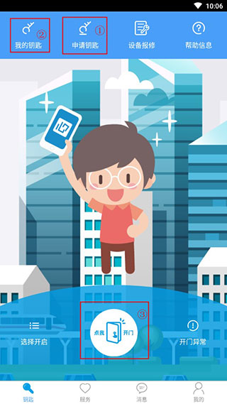 2.登陆平台,选择“申请钥匙”,添加目标门禁设备
